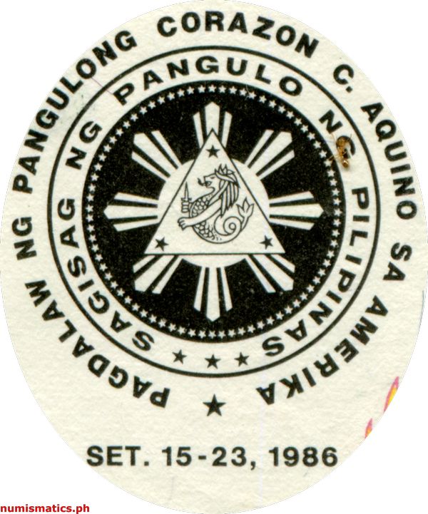 Seal of the President of the Philippines "Pagdalaw ng Pangulong Corazon C. Aquino sa Amerika" "Set. 15-23, "